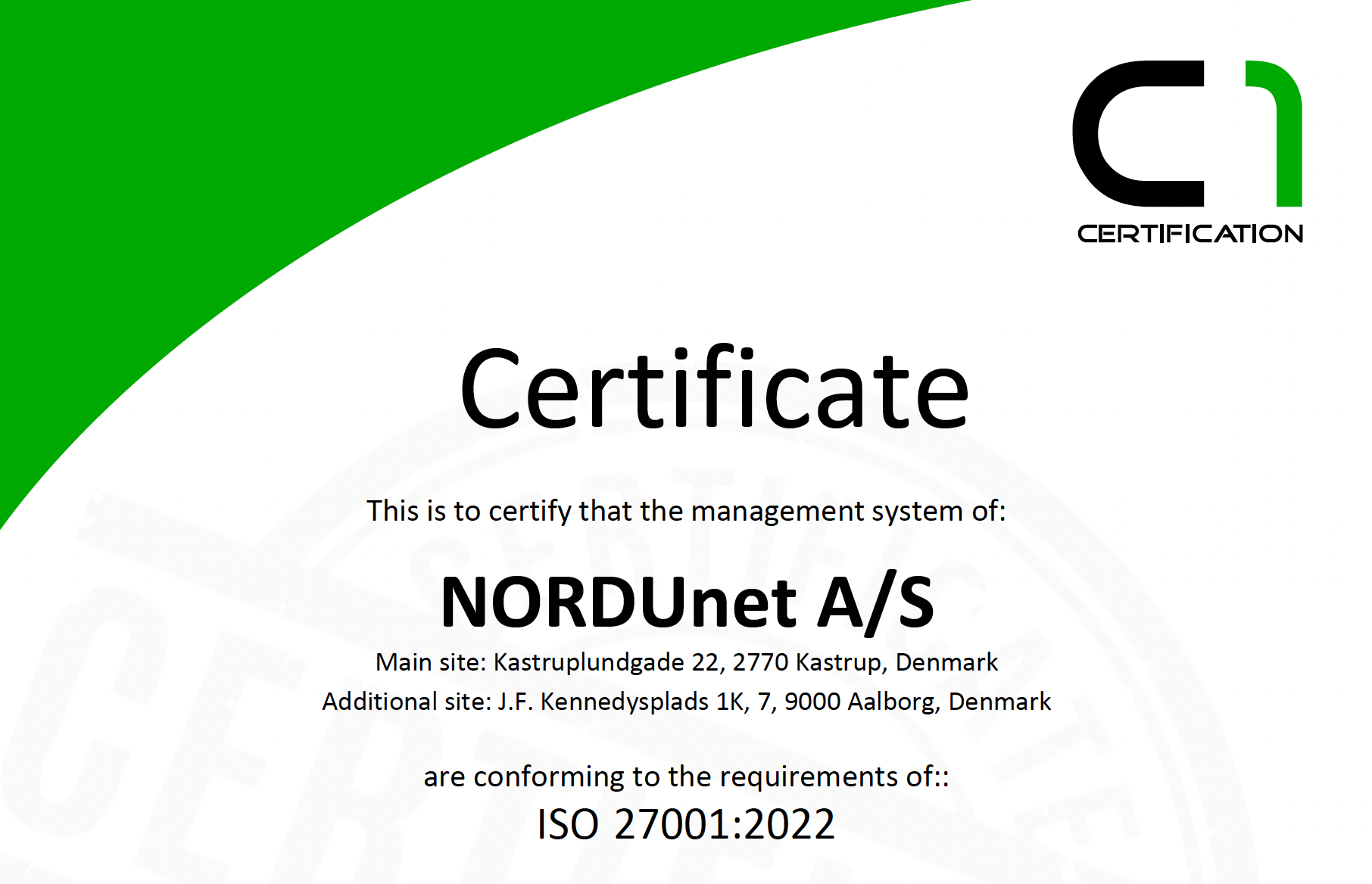 Following a lengthy auditing process, NORDUnet’s management regime for data security is certified as complying with the leading international standard.